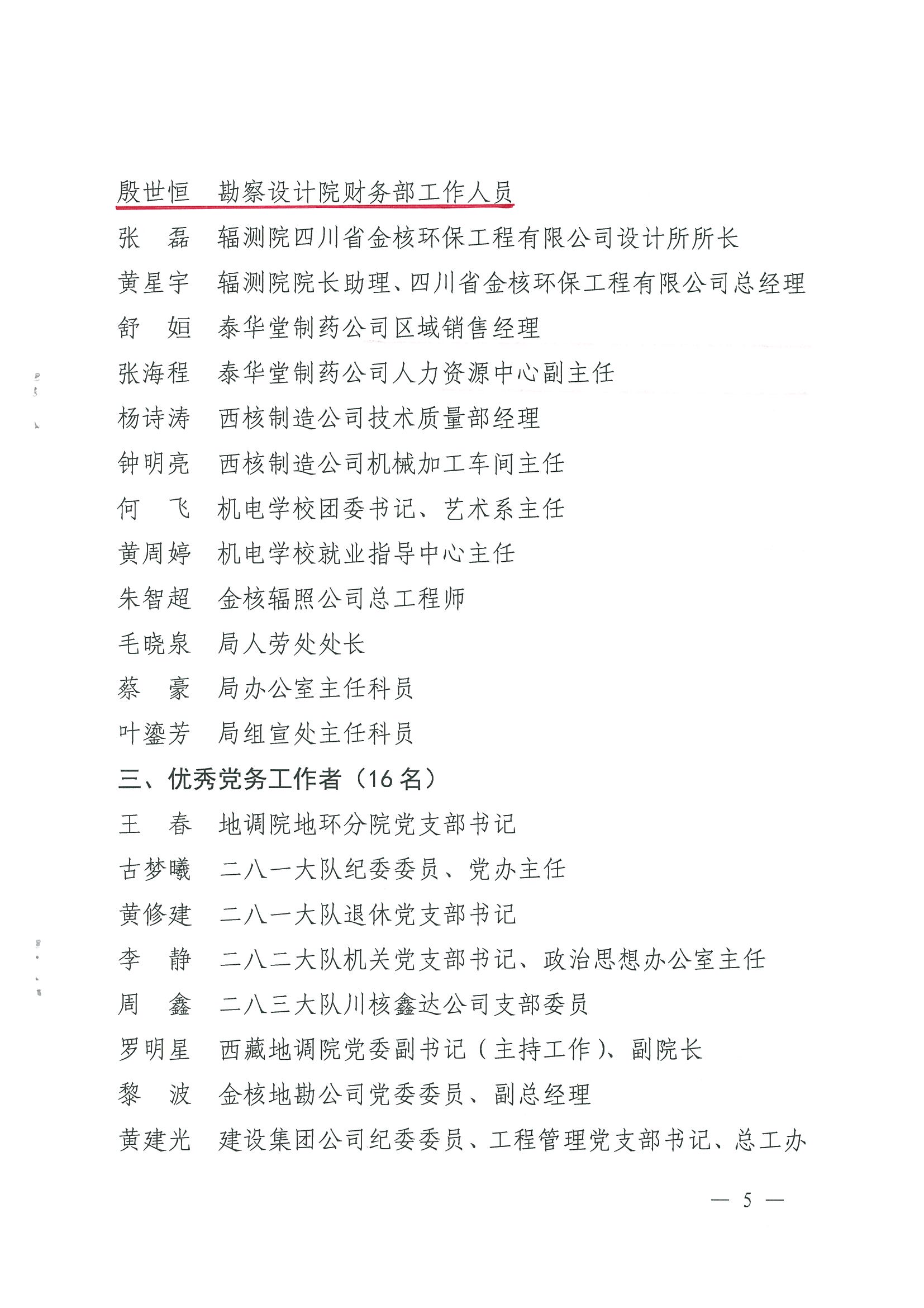 中共核工業(yè)西南勘察設(shè)計(jì)研究院委員會(huì)關(guān)于表彰2016年度優(yōu)秀共產(chǎn)黨員的決定